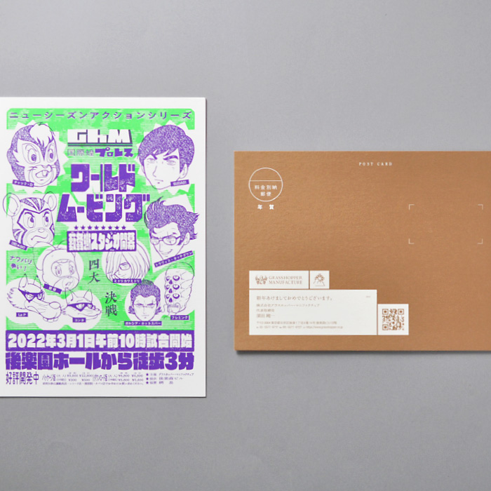 台湾の特殊印刷にトライしました!日本では珍しいグリーンメタリック箔、トランスペアレントな顔料ピンク箔、それに鮮やかなホログラムシルバー箔で、ポストカードを制作しました。